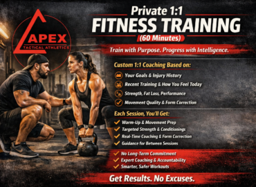Apex Tactical Athletics offers structured training programs and 1:1 coaching designed to build strength, resilience, and performance, whether your goal is better fitness, improved conditioning, or higher-level skill readiness.